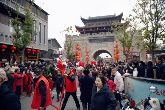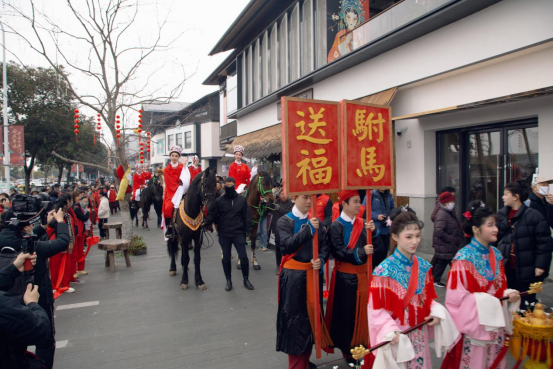 当日,游园会活动精彩纷呈。上午10时,“驸马送福”环节拉开序幕,身着戏服的“女驸马”骑马巡游开始,从大南门街区戏台出发,一路为市民送上元宵祝福,独特的黄梅戏文化体验吸引众多市民驻足合影。